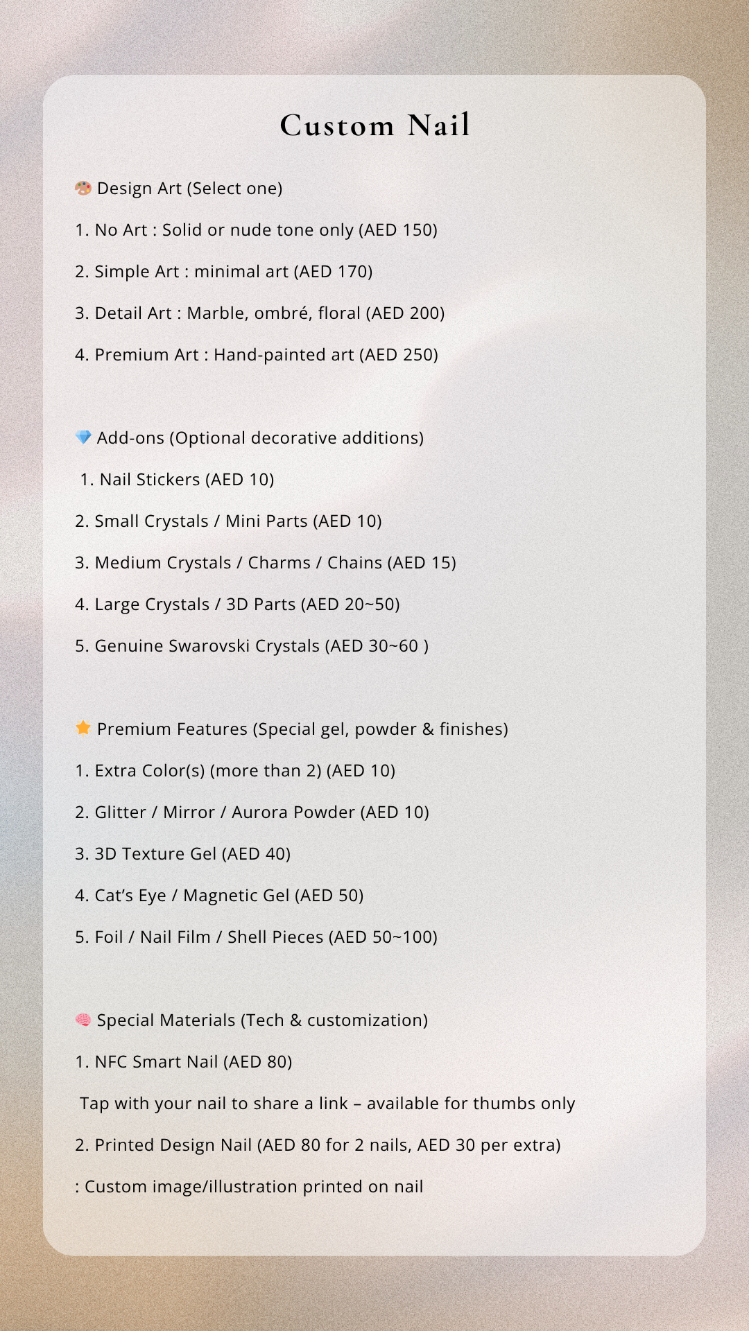 2. Printed Design Nail (AED 80 for 2 nails, AED 30 per extra)